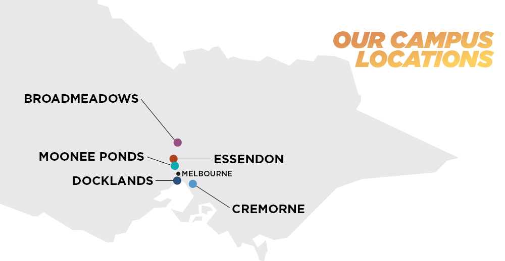 With public transportation nearby and on-site parking aplenty, our Broadmeadows campus houses a number of leading learning facilities including our student run onsite training restaurant - 'Richards', and the Gunung-Willam-Balluk Learning Centre for Indigenous students.